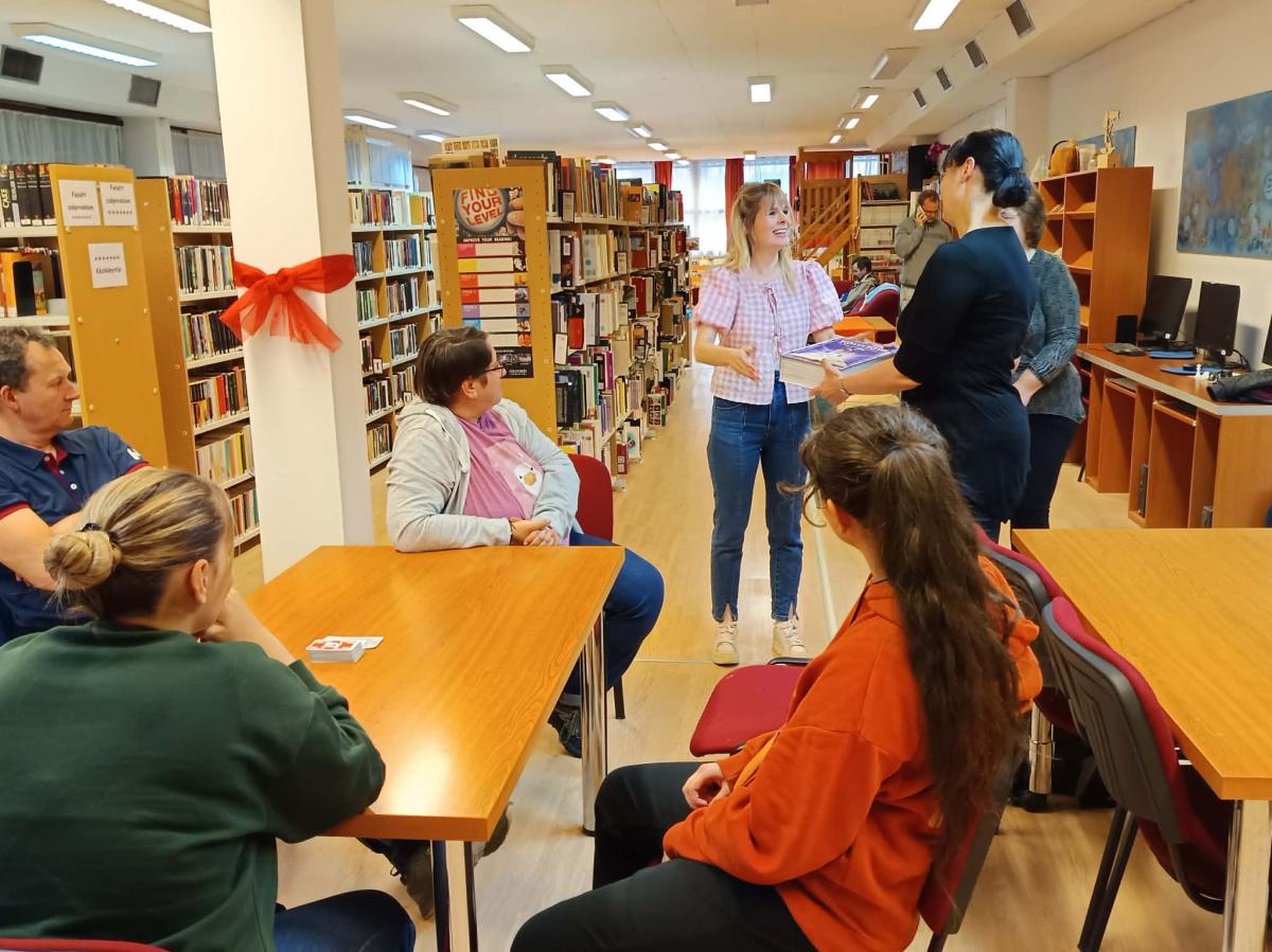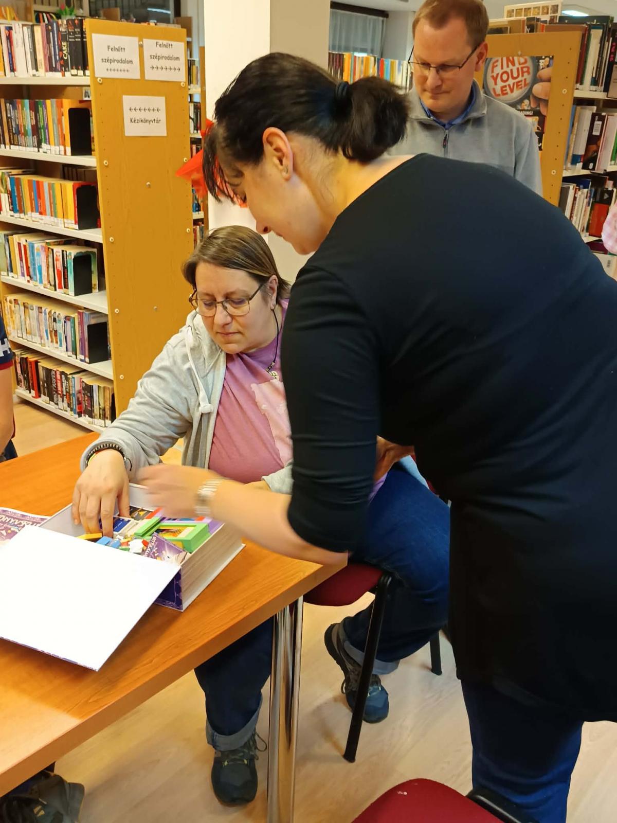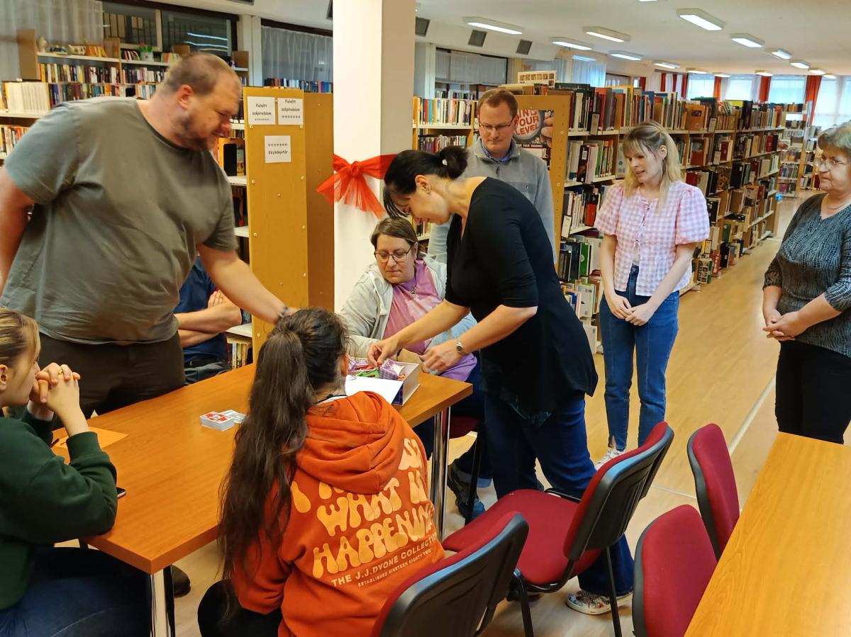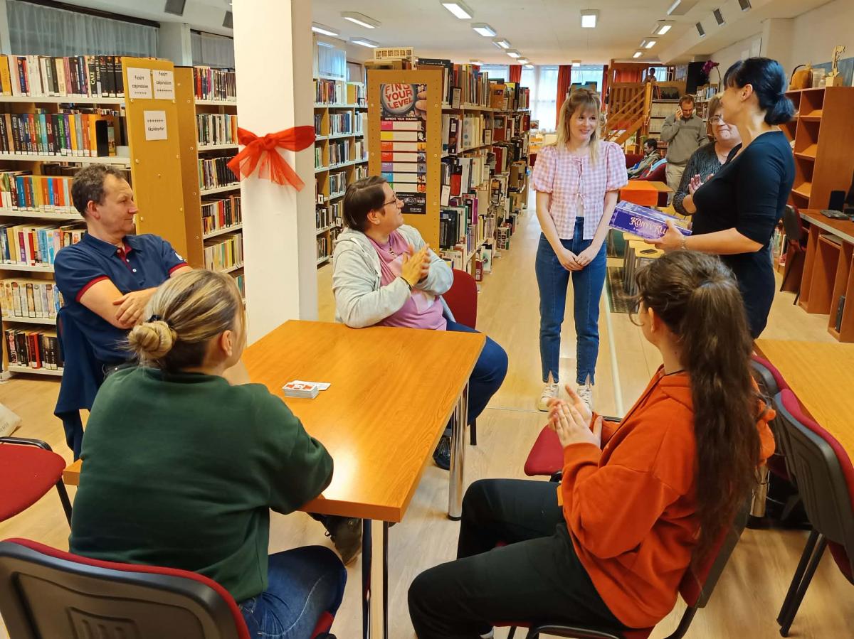 Tegnap a könyvtárban különleges élményben volt részünk: Takács Adrienn kolléganő adta át könyvtár saját készítésű „Könyvklub” című társasjátékát Zsohár Melinda klubvezetőnek. A játékot a tagok nagy örömmel fogadták, és rögtön ki is próbálták közösen – a jó hangulat és a sok nevetés pedig most sem maradt el!