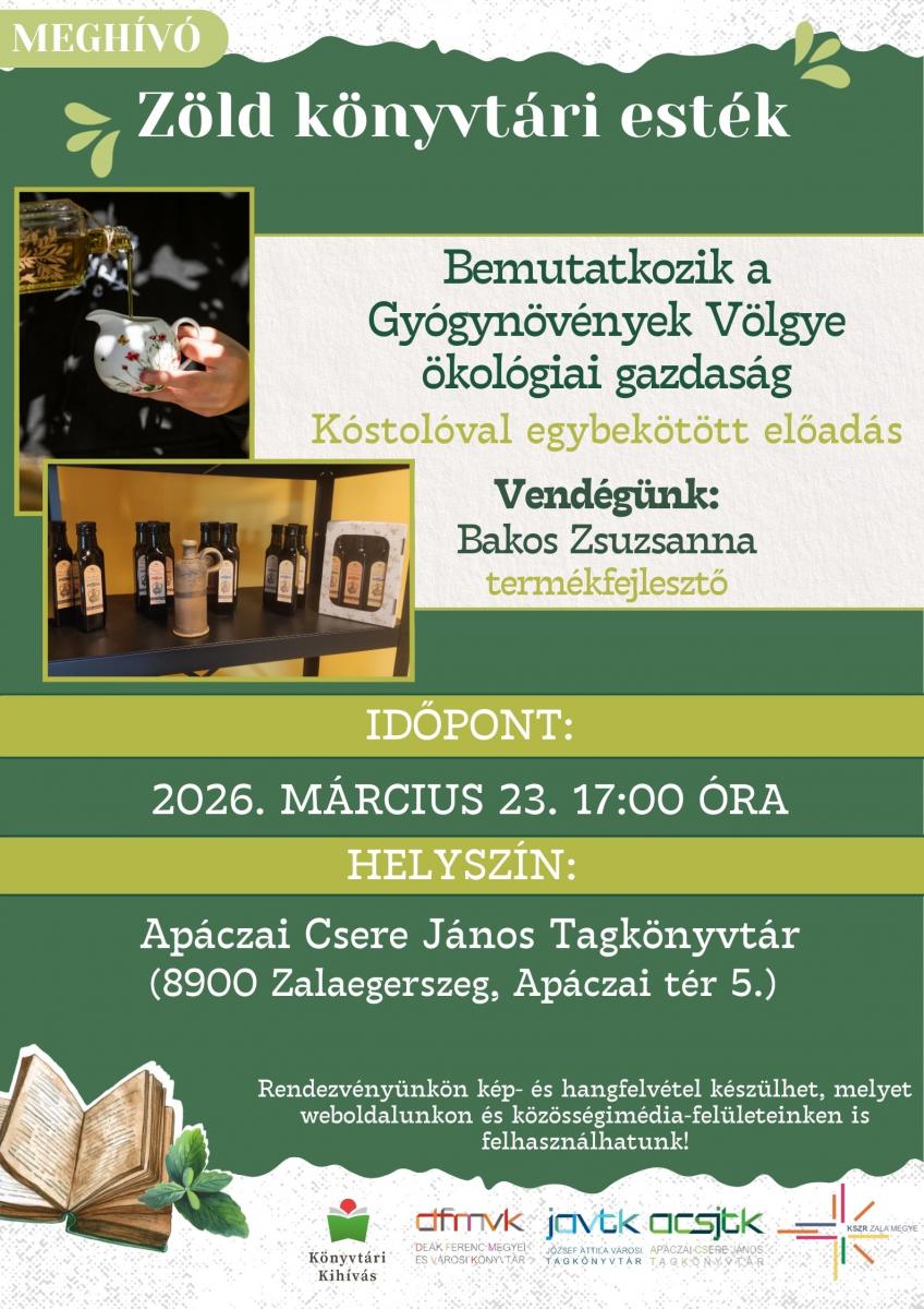 Ismerje meg a gyógynövények különleges világát, azok jótékony hatásait, felhasználási lehetőségeit és történeteit egy hangulatos, interaktív előadás keretében. Az est során lehetőség nyílik különféle gyógynövényes termékek megkóstolására is. Szeretettel várunk minden érdeklődőt!