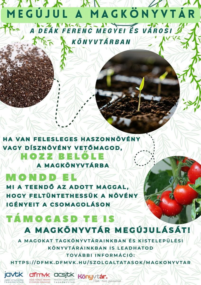 A magkönyvtár lényege, hogy a közösség tagjai megosszák egymással a kertjeikből származó magokat, ezzel segítve a sokszínűséget, a fenntarthatóságot és az önellátást. Hozd el felesleges, jó minőségű vetőmagjaidat, és cseréld el más kertbarátok különböző fajtáira! A magok leadására és átvételére a könyvtár nyitvatartási idejében van lehetőség. Fedezd fel a közösségi kertészkedés örömét, és segíts, hogy együtt egy élő, növekvő maggyűjteményt hozzunk létre!