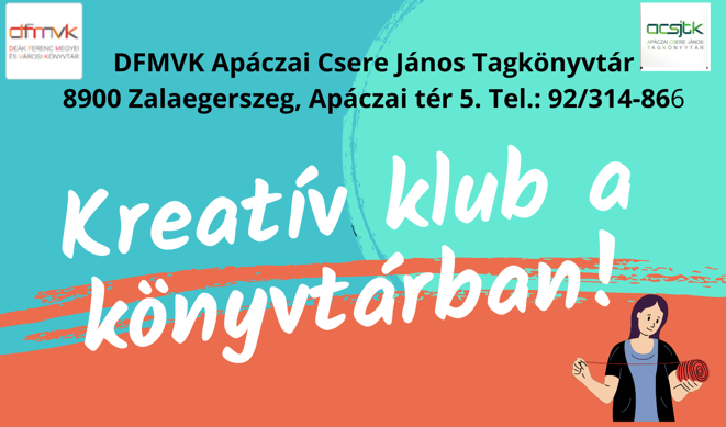 2014-től folyamatosan Kreatív klub működik a könyvtárban. A foglalkozások havi 2 alkalommal péntek délutánonként zajlanak. A felnőtteknek szóló programon különböző technikával készülnek terítők, ékszerek, díszítő tárgyak. A foglalkozásokról érdeklődni az alábbi elérhetőségeken lehet: